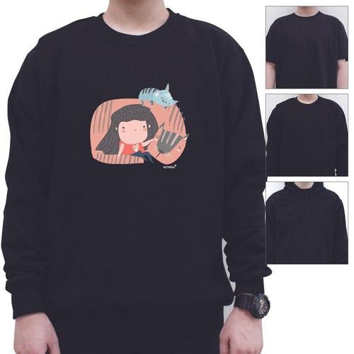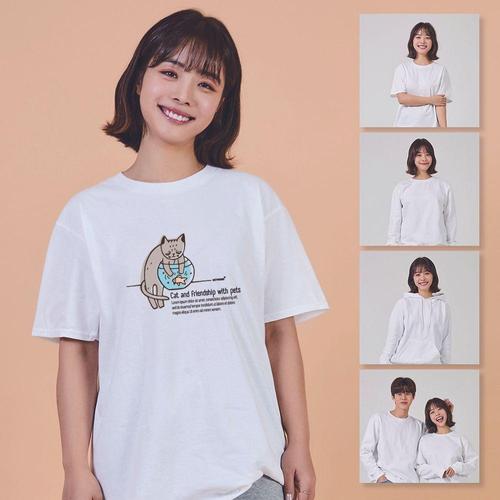 키밍 맨투맨 후드티 야옹이랑 친구 물고기 티셔츠 WAE09C6