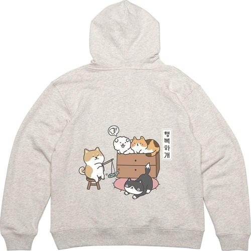 헤비후드티 뒷면 행복하개 야옹이그룹 의류 프린팅