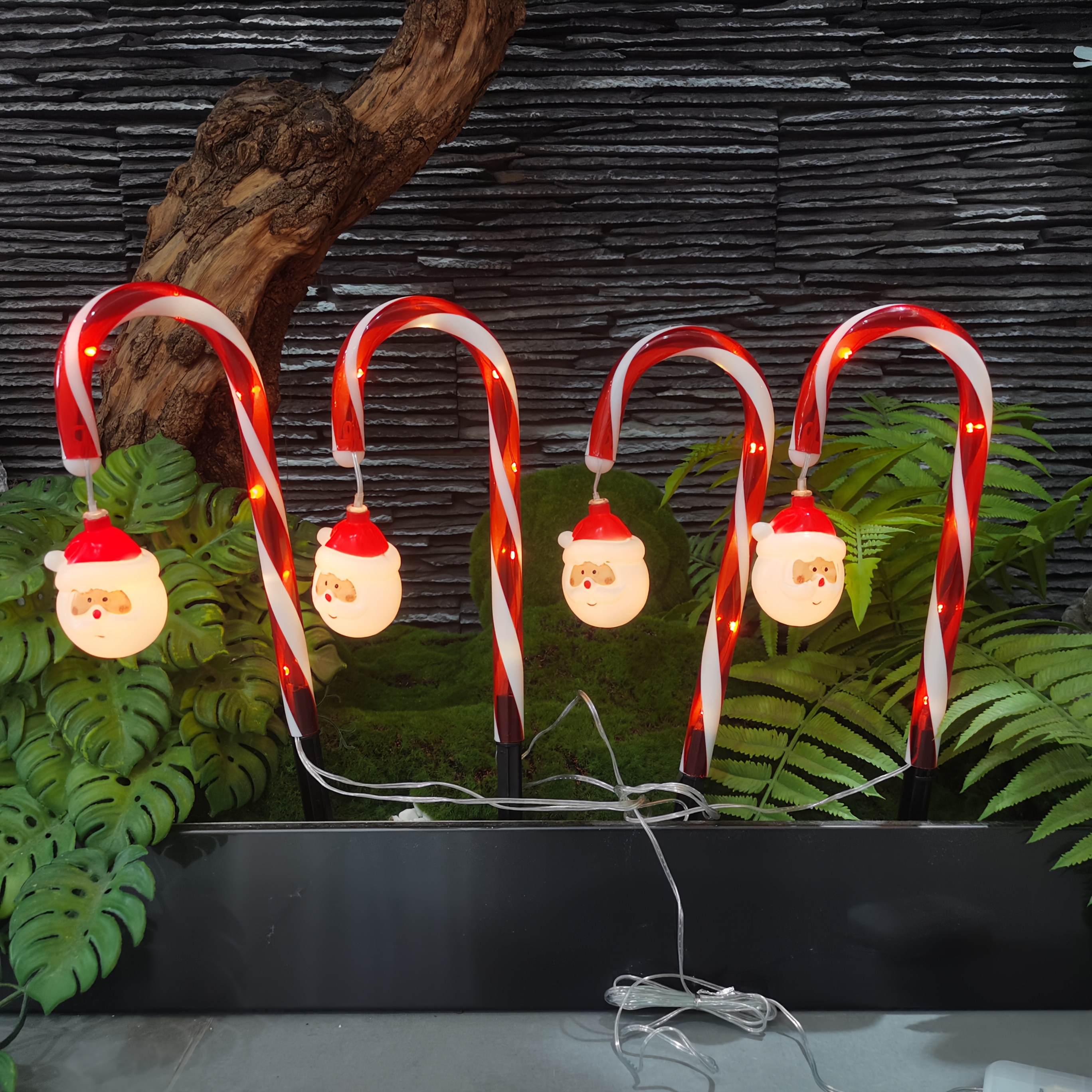 TEMU LED 크리스마스 잔디 조명, 사탕 막대 & 산타 클로스 디자인, 8가지 깜박임 모드, 배터리 작동, 마당, 통로, 보도, 진입로에 적합, 축제 분위기, 크리스마스 장식, 추수감사절에 완벽