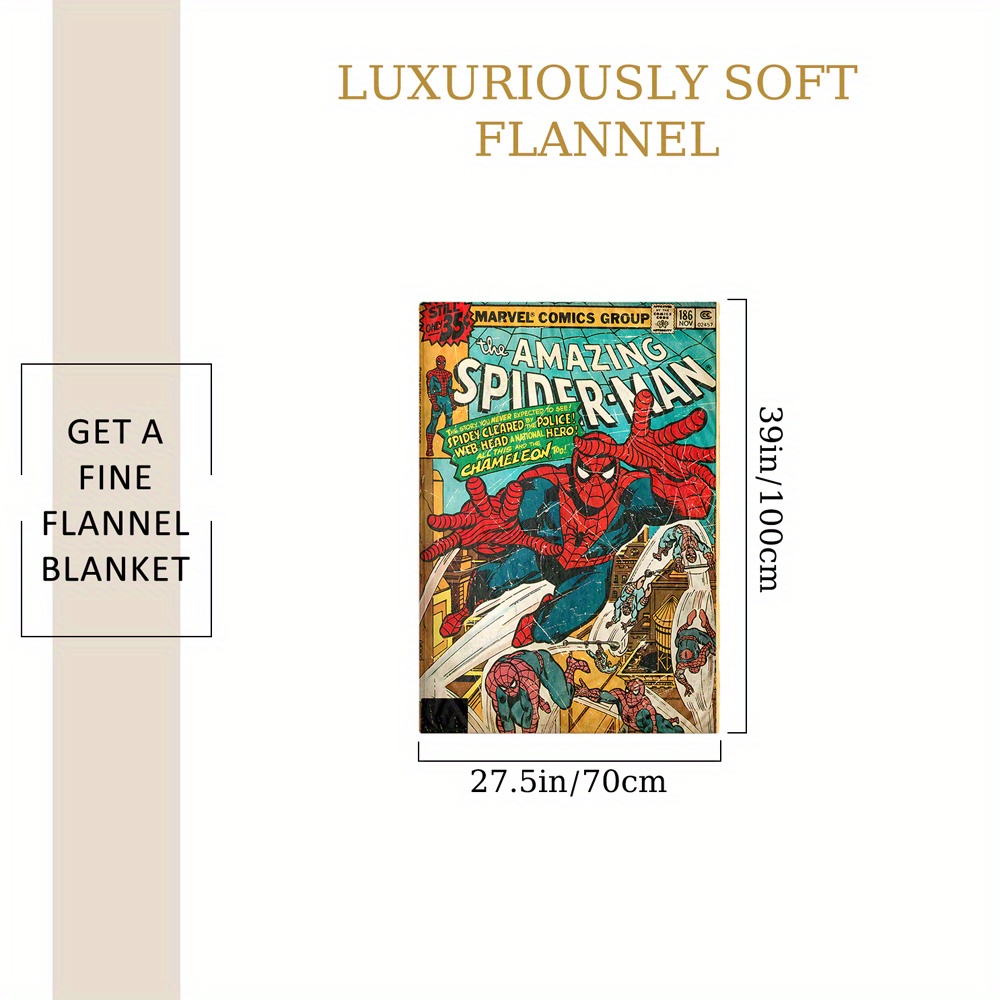 TEMU 1개 마블 스파이더맨 프린트 플란넬 담요 - 부드럽고 편안한 사계절용, 액션 가득 코믹 아트 레드 & 블루 디자인, 침대·소파·캠핑용 - 마블 팬을 위한 완벽한 선물, 장식, 동적 캐릭터 일러스트레이션, 사무실 컴포트, 현대적인 스타일, 내구성 있는 소재, 홈 데코
