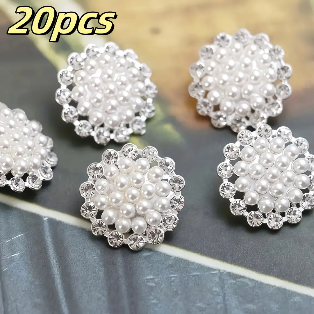 TEMU 20개 우아한 화이트 펄 장식 버튼 - 의류, 가방, 공예에 완벽 - 셔츠, 드레스, 재킷, 홈 데코레이션에 이상적, 빈티지 버튼 디자인, 내구성 있는 합금 버튼, 공예용 버튼, 의류 단추,짐 장식,클래식 스타일,튼튼한 버튼,오래 지속되는 버튼,패션 버튼,장식 버튼,공예 애호가