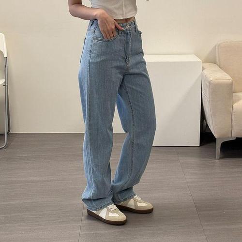 [옷자락] 여성 여름 얇은 데님 세미와이드 일자핏 연청색 청바지