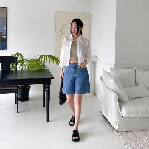 [다잇템][다잇템] 여자 얇은 여유핏 SS 마원단 하프 진 데님 반바지_14719122_588872