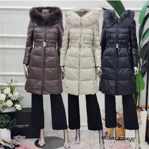 (재고 정리 이월 상품) 빅세일 여성 천연 폭스퍼 카라 천연 양가죽 100% 구스다운 롱 패딩