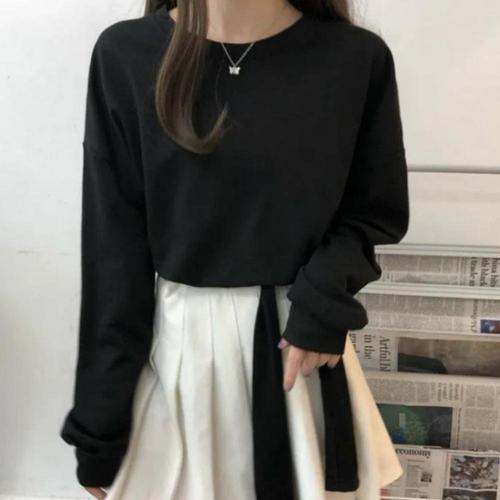 [옷자락]여자 양기모 겨울긴팔티 옆셔링 라운드넥 크롭 티셔츠