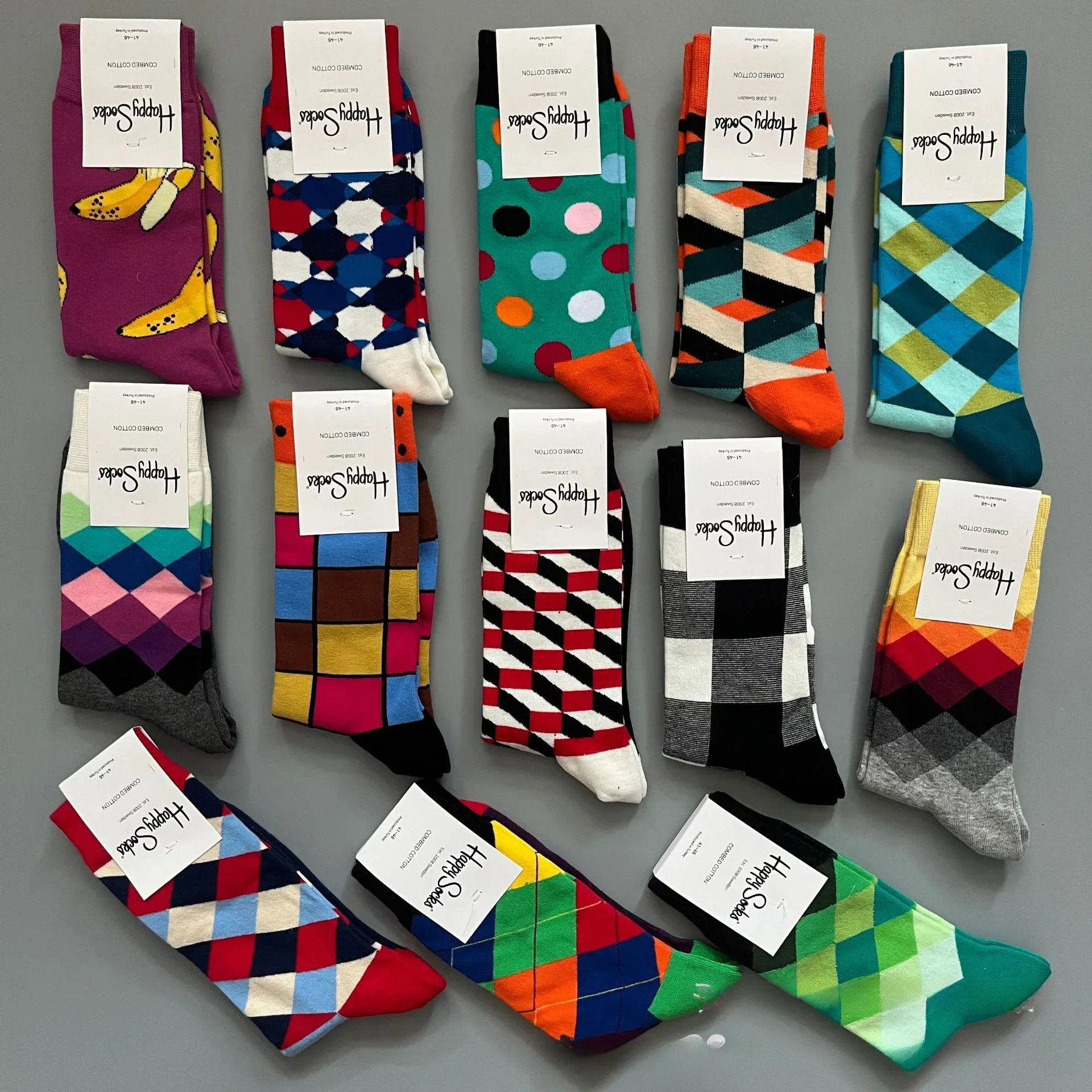 면 해피 양말 남성용 클래식 크루 양말 신발 사이즈 10 - 13 소프트