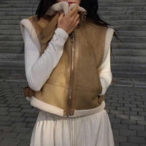 [옷자락]여성 하이넥 양모 무스탕 레이어드 데일리 조끼