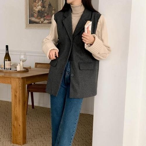 [페리엠]양모 러블리룩 루즈핏 조끼 라이즈퍼베스트