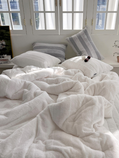 unique 프리미엄 겨울 따뜻한 극세사 이불 커버 우유 양털 기모 뽀글이 침대 4종 세트