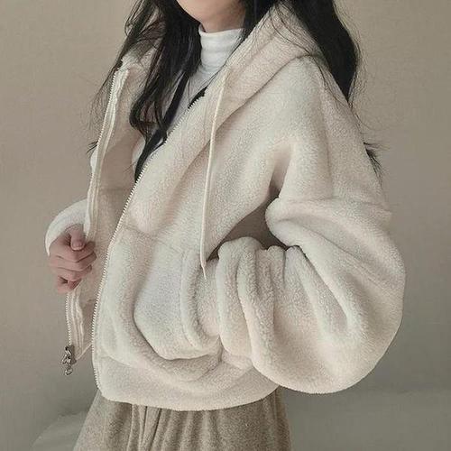 [셀러허브_여성트랜드패션]여자 세미크롭 양털 후드집업 뽀글이 자켓