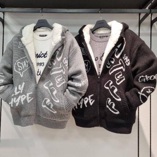 남녀공용 기모 맨투맨 후드 집업 가을겨울 보온방한 양털 후리스 안감 집업 코트 패턴 루즈핏 트레이닝 아우터 커풀룩 빅사이즈