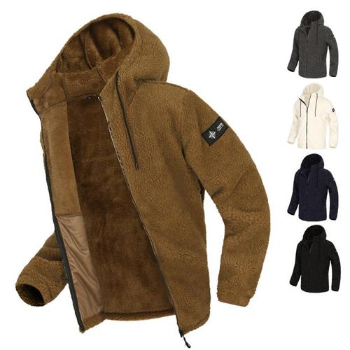 ANYOU 남성 보온 양털 코트 가을 겨울 기모 자켓 후드점퍼