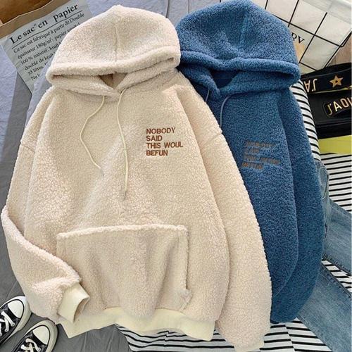 겨울 후드 퍼 오버핏 양털 티 후리스 뽀글이