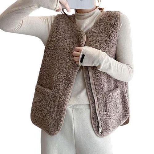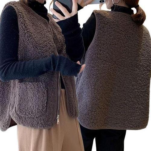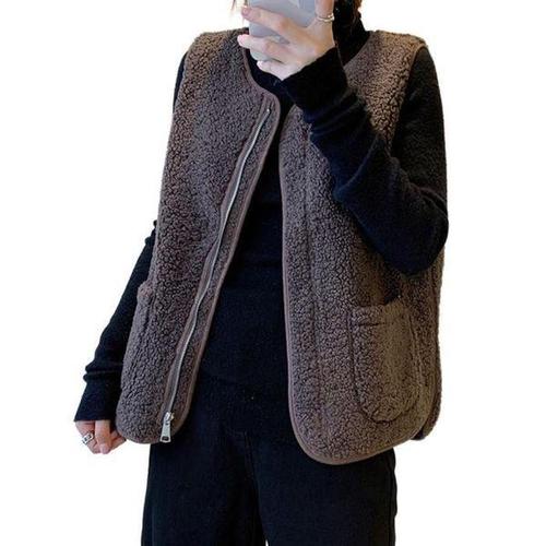 [셀러허브_여성트랜드패션]Rly 나프커 브라운 후리스조끼 양털 뽀글이조끼 집업