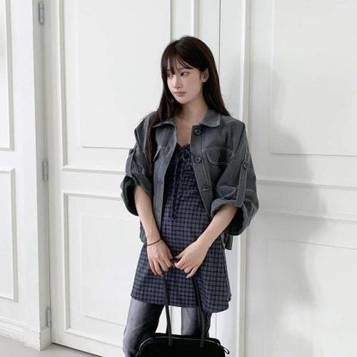 [다잇템][다잇템] 여성 격자 귀여운 쁘띠 어깨끈 패턴 잔주름 원피스_23303135_588872