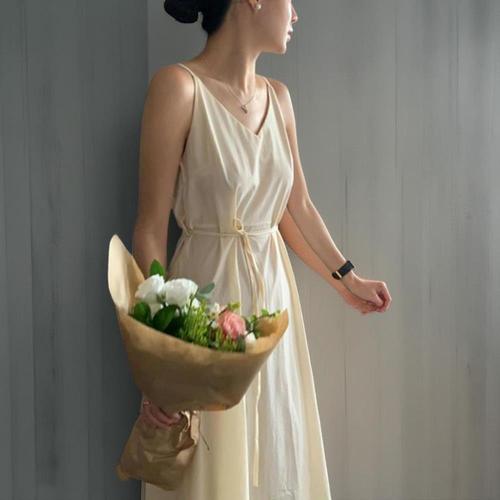 [다잇템]여자 롱 허리스트랩 어깨끈 V넥 원피스