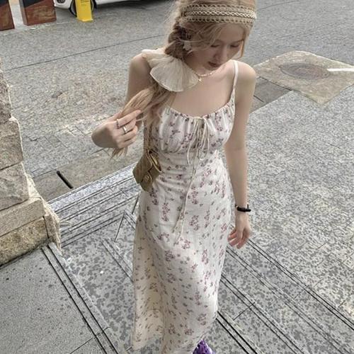 [다잇템][다잇템] 여성 어깨끈 귀여운 스트랩 롱 플라워패턴 원피스_22894600_588872