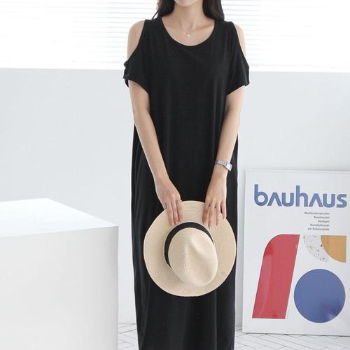 [옷자락] [시즌오프]여름 찰랑핏 어깨트임 휴양지룩 반팔 롱원피스_5