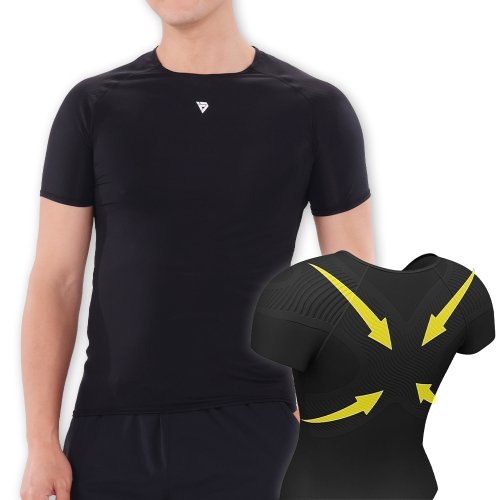 [특가][테이핑테크] 바른자세 테이핑웨어 남성용 1장 라운드숄더 말린어깨 골프 테니스 기능성 반팔 티셔츠