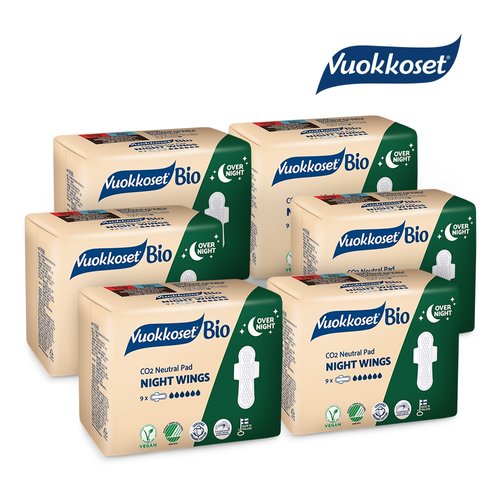 VUOKKOSET 뷰코셋 생리대 유기농 생분해 나이트윙 6팩