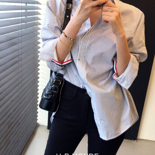 유아몽드 / 브이넥 오버핏 여자 남방셔츠 화이트 블루 루즈핏 셔