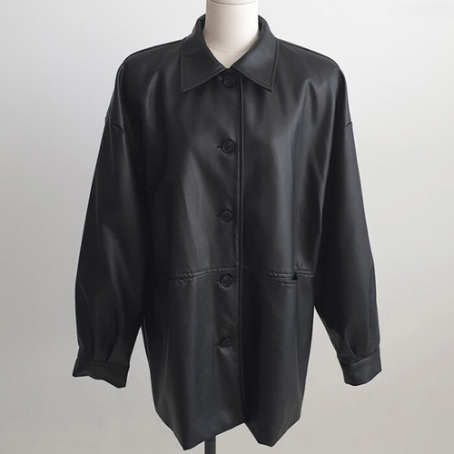 아이미마인 / 아크 카라 루즈핏 박시 포켓 가죽 자켓셔츠