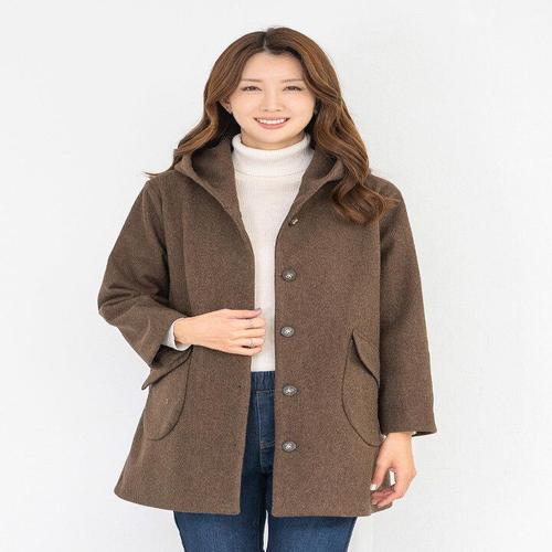 [모슬린]엄마옷 울모직 후드 하프 코트 511FGH019 마담/중년여성/빅사이즈/50대/60대