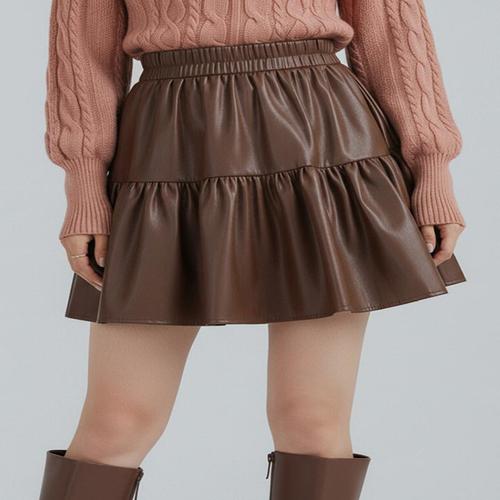 [플로우랩][플로우랩] 페이크 레더 캉캉 치마바지_FLPS001F25