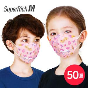 슈퍼리치 어린이 새부리형 일회용 마스크 무지개핑크 (50매) 유아 아동 패턴 캐릭터 3D입체