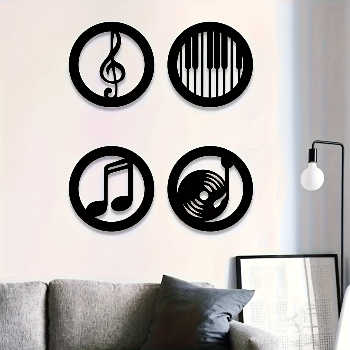 TEMU 4개 세트 우드 벽 장식 - 음악 & 피아노 실루엣 데코, 우아한 프레임이 있는 음악 테마 우드 패널 4개, 7.87인치, 홈, 스튜디오, KTV용 - 음악가, 생일, 집들이 선물