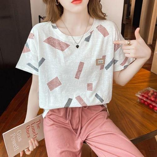 MOSAIRATION 신상 엄마 셔츠 기질 여름 날씬해 보이는 칠부 프린트 상의 빅사이즈 신중식 X250407Z