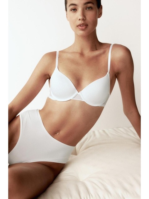 [에이치엔엠] 언더와이어 패드컵 브라 2피스 세트 화이트/다크 베이지 0820572034