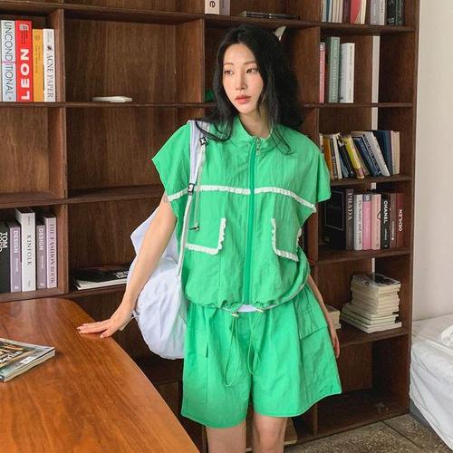 [다잇템]여성 윈드브레이커 스타일 키치 레이스 조끼