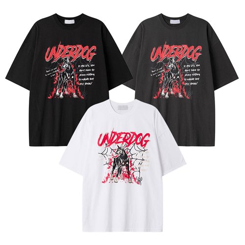 남자 오버핏 언더독 메탈 반팔 티셔츠 RM-TSH-Q036-화이트
