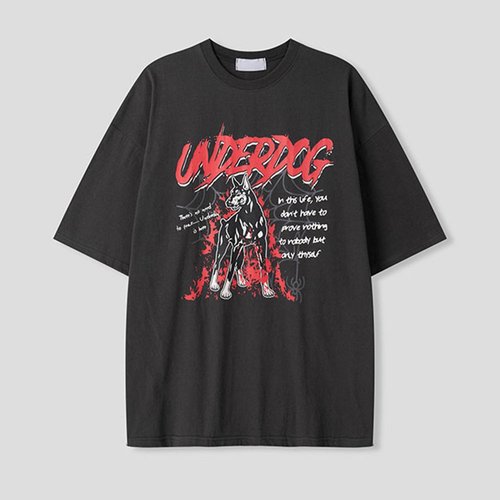 남자 오버핏 언더독 메탈 반팔 티셔츠 RM-TSH-Q036-먹색