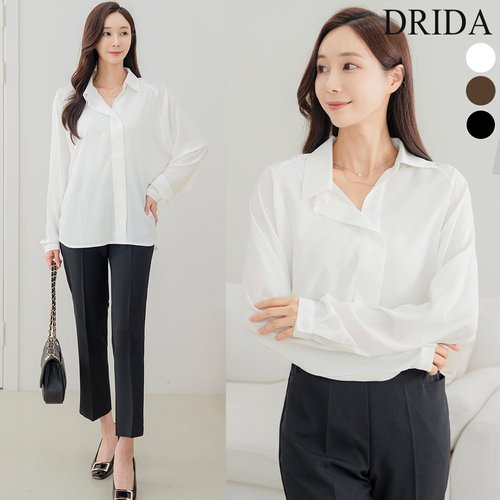 드리다 여성 봄 가을 언발 카라 브이넥 빅사이즈 쉬폰 롱 블라우스 40-50대 미시 여성 엄마옷 하객 오피스