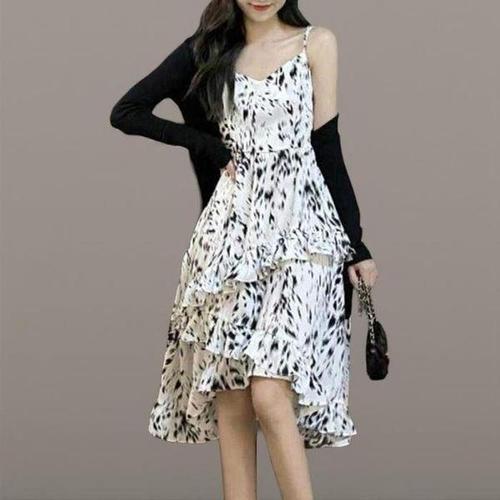 [다잇템_패션]여성 언발란스 프릴 디자인 시폰 드레스
