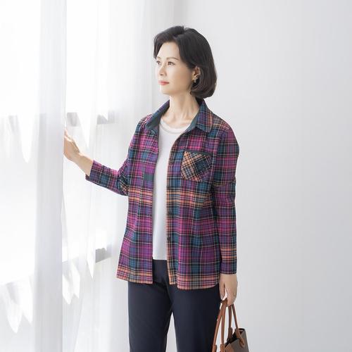 [쉬즈마담]J31733 오색체크 기모 후드코트 50대 엄마옷