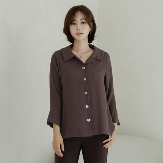 엄마옷 블라우스 카라 오픈 무지 셔링 603BNM279 중년여성/50대/60대/마담/빅사이즈/할머니옷