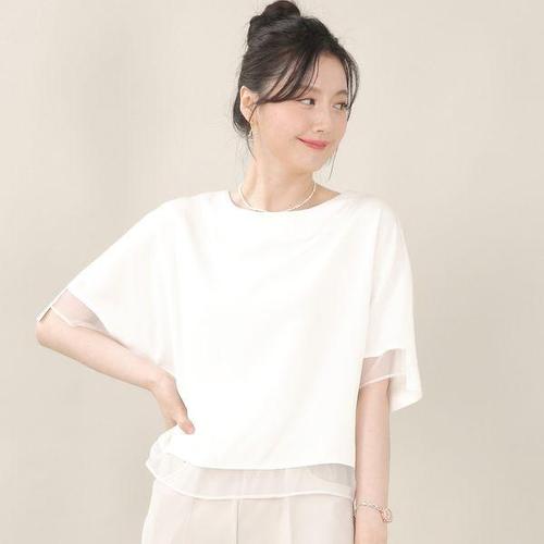 [애비뉴투지]엄마옷 보석 플라워 쉬폰 소매 시스루 여성 여름 5부 반팔 루즈핏 블라우스 B07541