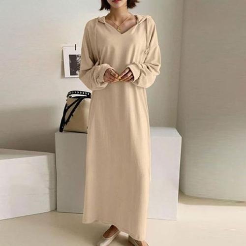TEMU 우아한 A라인 맥시 드레스, 전면 지퍼 장식 - 겨울용 따뜻한 긴팔 라운드넥 드레스, 캐주얼, 홈웨어 및 세미포멀 착용에 적합 - 솔리드 컬러 쉬운 관리 드레스