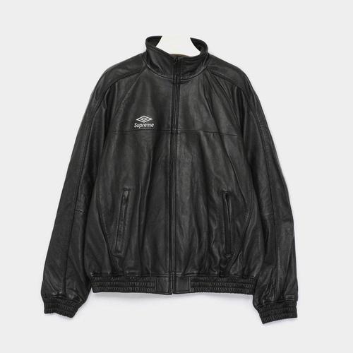 갤러리아_슈프림 25FW 자수로고 엄브로 레더 트랙 남성 자켓 FW25J17 BLACK