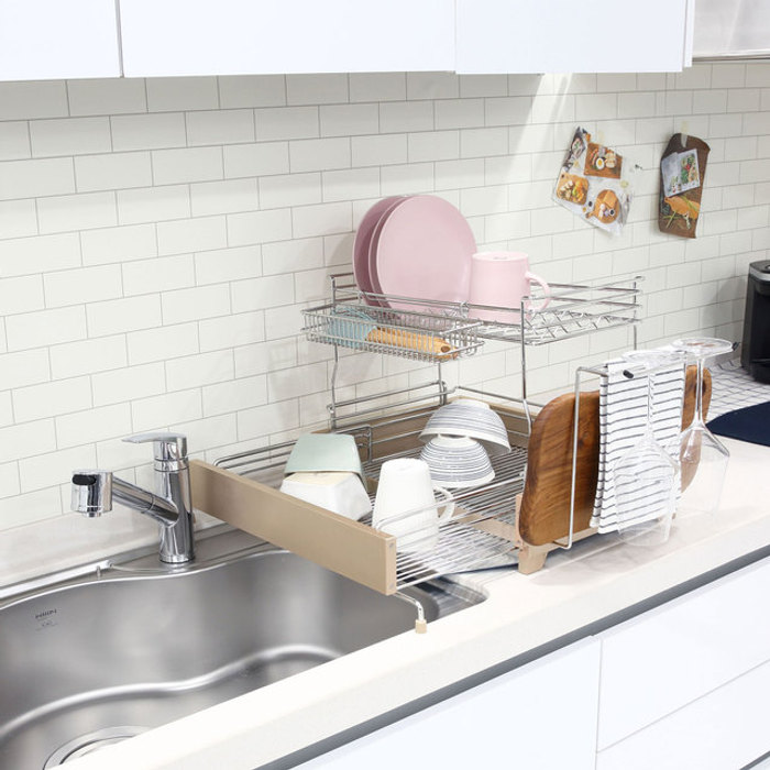 에넥스 무타공 2단 높이조절 식기건조대 티타늄컬러 주방 선반