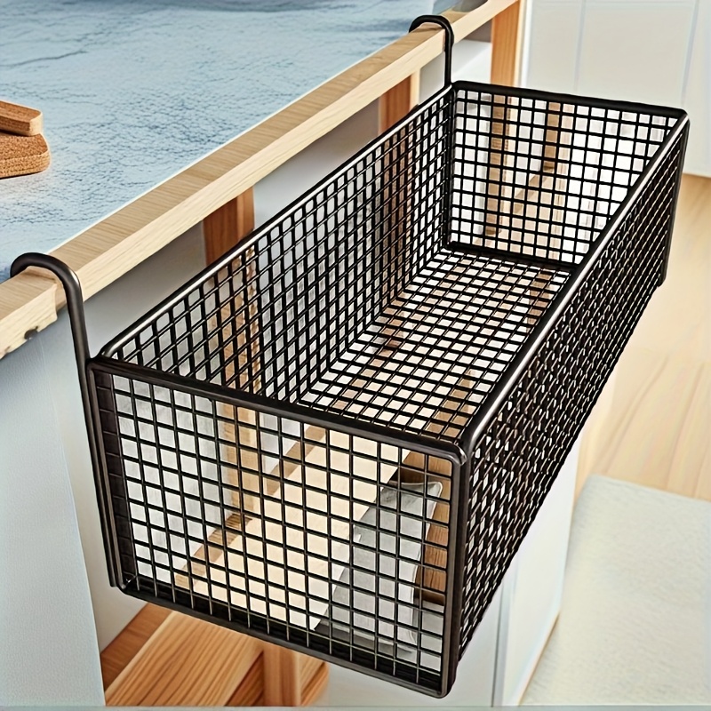 TEMU 튼튼한 금속 문걸이 수납 바구니 - 직조 그리드 디자인 & 견고한 후크, 헤비듀티 블랙 현대적 공간절약형 정리함 (상단 선반 & 하단 수납 선반 포함) - 침실, 기숙사, 옷장용 다목적 정리함 (옷, 장난감, 침구류 보관) - 내구성 강한 금속 프레임, 모던 블랙 마감, 쉬운 설치, 홈 오거나이저를 위한 다용도 수납 솔루션