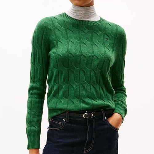 [해외배송] 타미 여성 울 케이블 니트 스웨터 Evergreen