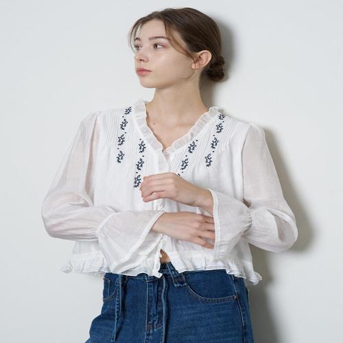 [미니멈][미니멈 에브리데이]V넥 프릴 자수 긴팔 블라우스 (EB3BA035D)
