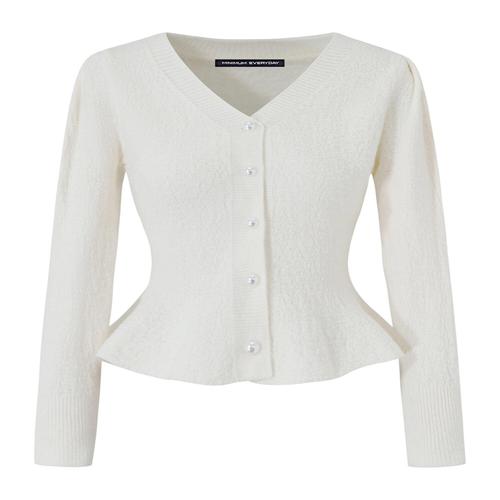 [미니멈에브리데이][미니멈 에브리데이]브이넥 페플럼 진주 버튼 니트 가디건 (EB4CK064D)