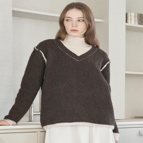 [미니멈에브리데이][미니멈 에브리데이]브이넥 레이어드 배색 절개 라인 울 니트 (EB4KT048D)
