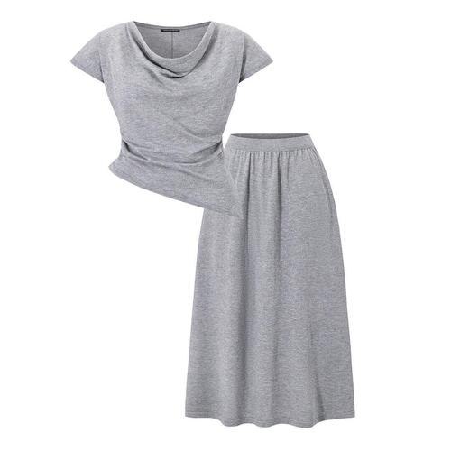 [미니멈에브리데이][미니멈 에브리데이]드레이프 언발 티셔츠 롱 스커트 셋업 (EC2OW028D)