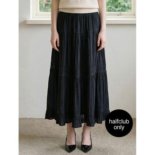 [미니멈 에브리데이]플라워 레이스 티어드 허리 밴딩 롱 스커트 (EC2WH016D)